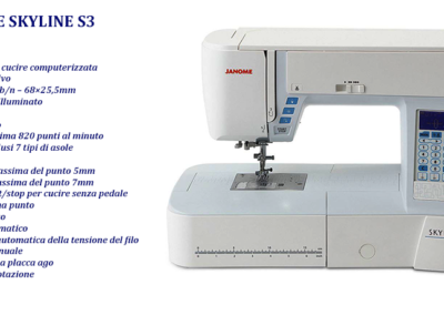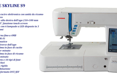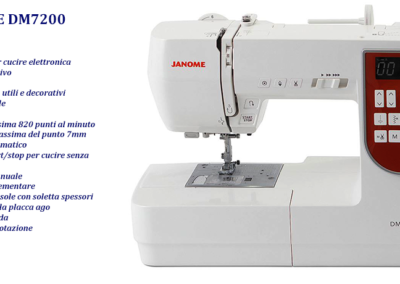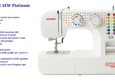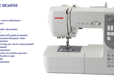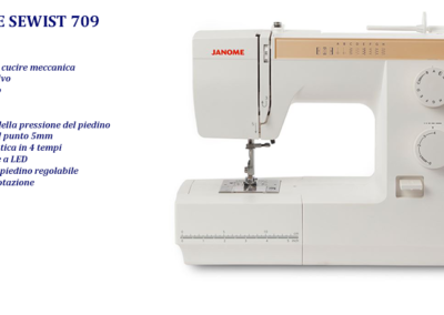 Macchina per cucire computerizzata, crochet rotativo, schermo LCD b/n – 68×25,5mm, display retroilluminato, 6 luci a LED, braccio libero, velocità massima 1000 punti al minuto, 170 punti inclusi 10 tipi di asole, 4 alfabeti di cui 1 a 9mm, lunghezza massima del punto 5mm, larghezza massima del punto 9mm, pulsante start/stop per cucire senza pedale, pulsante ferma punto, ago alto/basso, rasafilo automatico, regolazione automatica della tensione del filo, infila ago manuale, tagliafilo sulla placca ago, leva a ginocchio alzapiedino e 11 piedini in dotazione